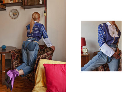 My lookbook was shot in a traditional Soviet-era style apartment downtown Sofia, Bulgaria. The concept of the photoshoot was to depict the femininity of the Eastern European women that goes by the idea of "being soft is to be powerful". She is brave as a worrier but soft like a flower. She is on a par with men but she never looses her femininity.