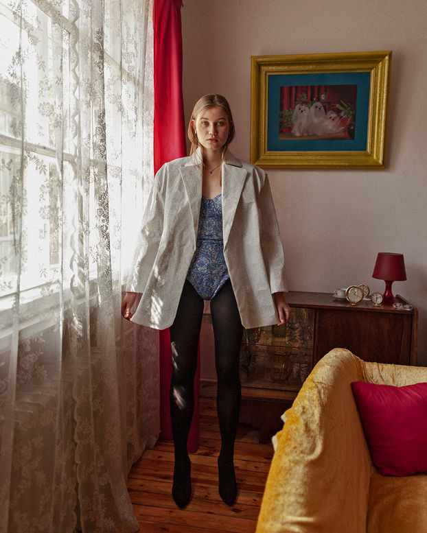 My lookbook was shot in a traditional Soviet-era style apartment downtown Sofia, Bulgaria. The concept of the photoshoot was to depict the femininity of the Eastern European women that goes by the idea of "being soft is to be powerful". She is brave as a worrier but soft like a flower. She is on a par with men but she never looses her femininity.